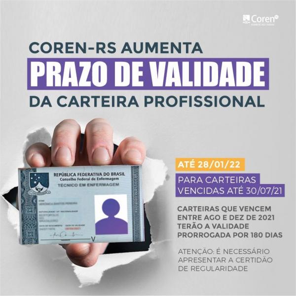 As carteiras vencidas até 30/07/2021 terão sua validade prorrogada até 28/01/2022. Já as carteiras que vencerão no período de 31/07 a 31/12/2021, terão sua validade prorrogada por 180 dias, a contar do vencimento (por exemplo: se o vencimento de sua carteira é no dia 10/09/2021, ela ainda valerá por 180 dias corridos a contar a partir desta data).