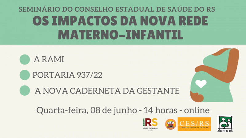 O Conselho Estadual de Saúde (CES/RS) divulgou no dia 09 de junho a Resolução nº 08/2022, que repudia o desmonte da Rede Cegonha (substituída neste ano pelo Ministério da Saúde, de forma arbitrária, pela Rede de Atenção Materna e Infantil - RAMI - Portaria 715 de abril de 2022) e demais retrocessos na assistência ao parto e nascimento no Brasil. O Conselho Regional de Enfermagem do Rio Grande do Sul (Coren-RS) apoia a resolução.